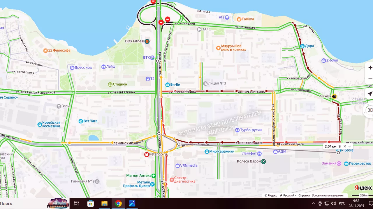 Решил повернуть на Северный мост с дублёра дороги ул. Остужева, но не получилось. Въезд на мост загорожен пластиковыми бонами и стоит знак "прямо и направо".