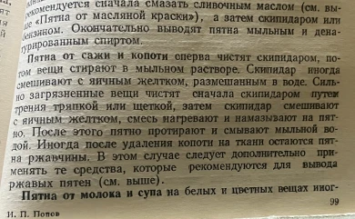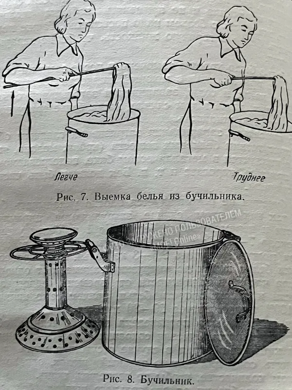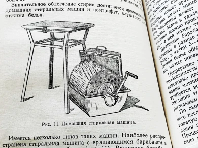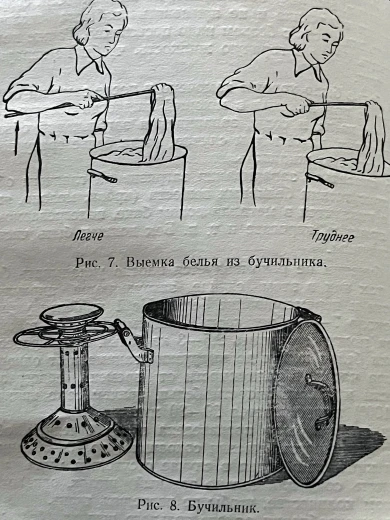 Боже мой! Там есть слова «бучильник», «поташ», «каолин», «копоть», «жавель», «синька» и т.п. Хозяйка видится титаном мысли и кладезем опыта. Стирка по книге - урок химии, физики, домоводства, мехмат, народные поверья и забота советского государства в одном.