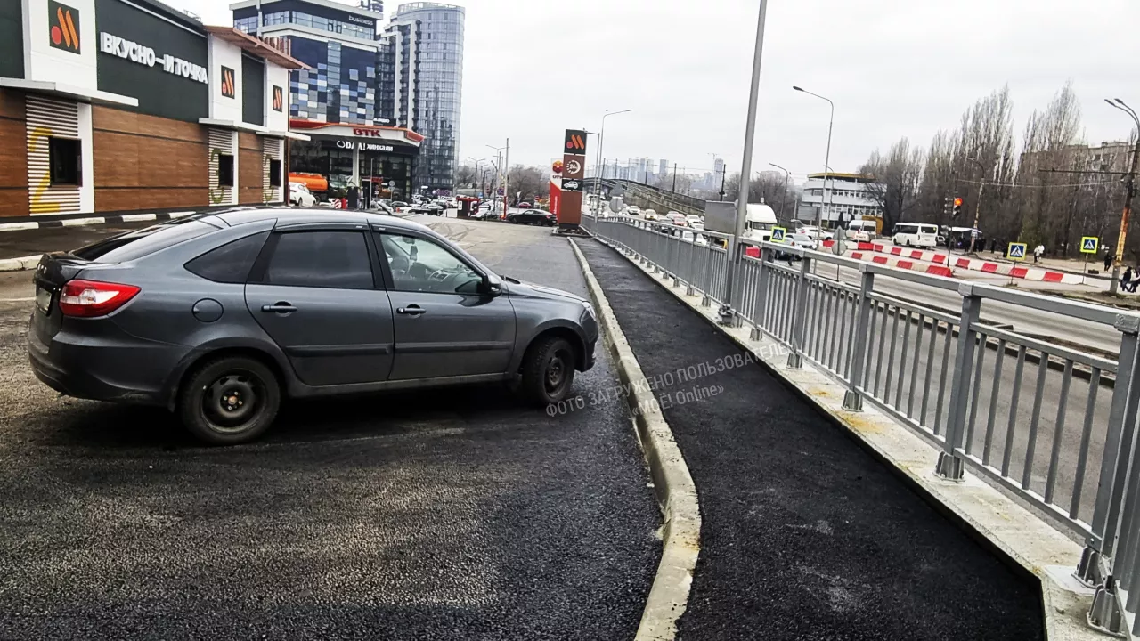 Парковка оборудована тротуаром и выходом с него к дороге, лестницу пока обустраивают. За счёт убранной, ранее действующей пешеходной зоны от дороги к входу кафе , увеличили количество парковочных мест.