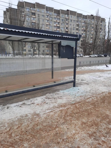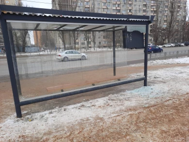 Не успел заметить, когда старый «ветродуй» поменяли на современный остановочный павильон. Уже стекло вдребезги!!!