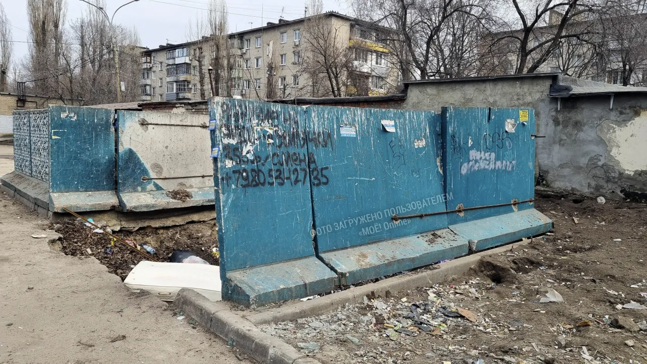 Уникальность её в том что бетонные плиты, образующие забор "парят" в воздухе над площадкой то есть над ямой для сбора ТКО. Плиты со временем покосились.