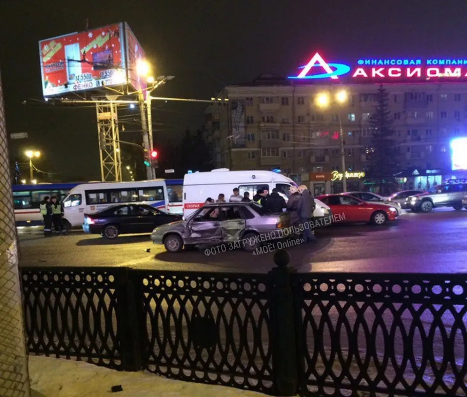 Автор видео пишет: На видео видно как Мерседес маршрута №105 стоит у стоп линии на запрещающий сигнал светофора, справа подъезжает его конкурент на Газели, он видимо решил заработать на пятнадцать рублей побольше и забрать пассажиров со следующей остановки, трогается на красный свет с полным салоном пассажиров и сталкивается с пятнашкой. В пятнашке пострадали два человека их забрала скорая.