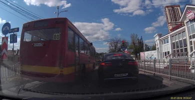 Водитель маршрутки №80 гос.номер х290хр36 на перекрёстке ул.Краснознамённая - ул.Чапаева грубо нарушил ПДД, проехав на красный сигнал светофора в тот момент, когда пешеходам горел зелёный. Далее, на перекрёстке ул.Краснознамённая - ул. Челюскинцев он занял правую полосу движения для поворота налево, тем самым заблокировав движение по правой полосе для тех, кто двигался прямо на зелёный сигнал светофора по ул. Краснознамённой в сторону ул.20-летия Октября.