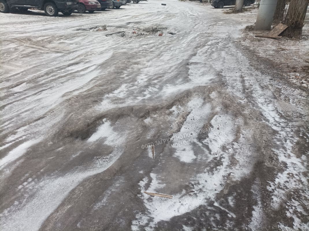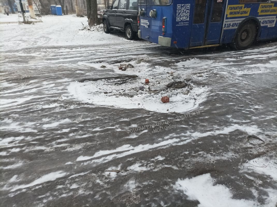 Сегодня заехал на мини рынок, расположенный на остановке Школа в северо-восточном микрорайоне на территории троллейбусного кольца. Начальный (или конечный) маршрут троллейбуса №11 и автобуса №21 (недавно открыли). Увидел такие ямы в асфальте и бугры изо льда и щебня.