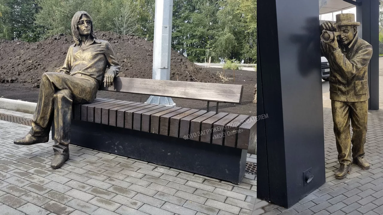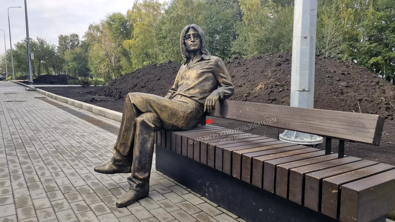Я посмотрел в сторону направленного объектива и увидел скамейку на ней фигуру человека. А это оказалась скульптура Джона Ленонна.