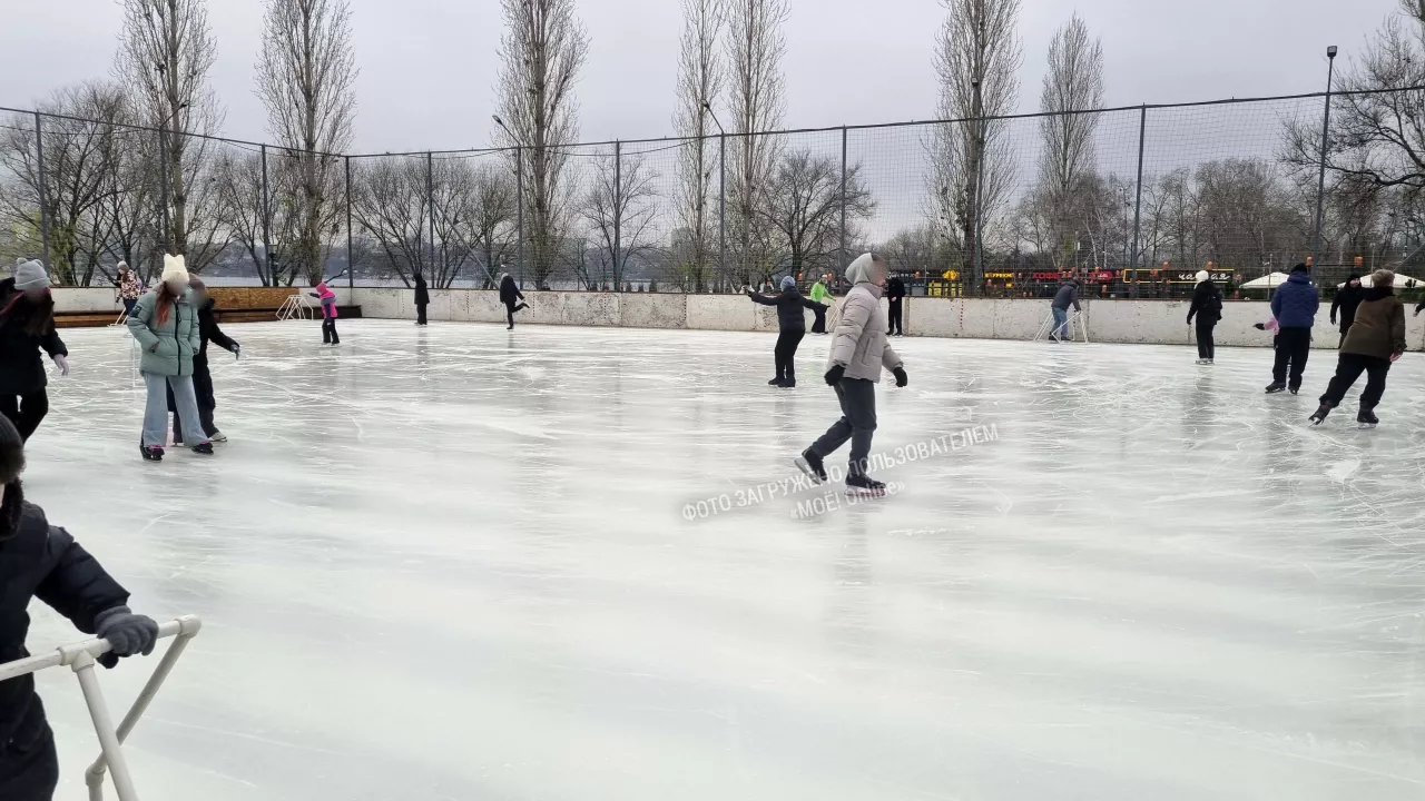 Сегодня уже народ ждал у входа первого открытия катка и возможность первому прокатиться по гладкому льду на катке в парке "Дельфин", открывя зимний сезон.