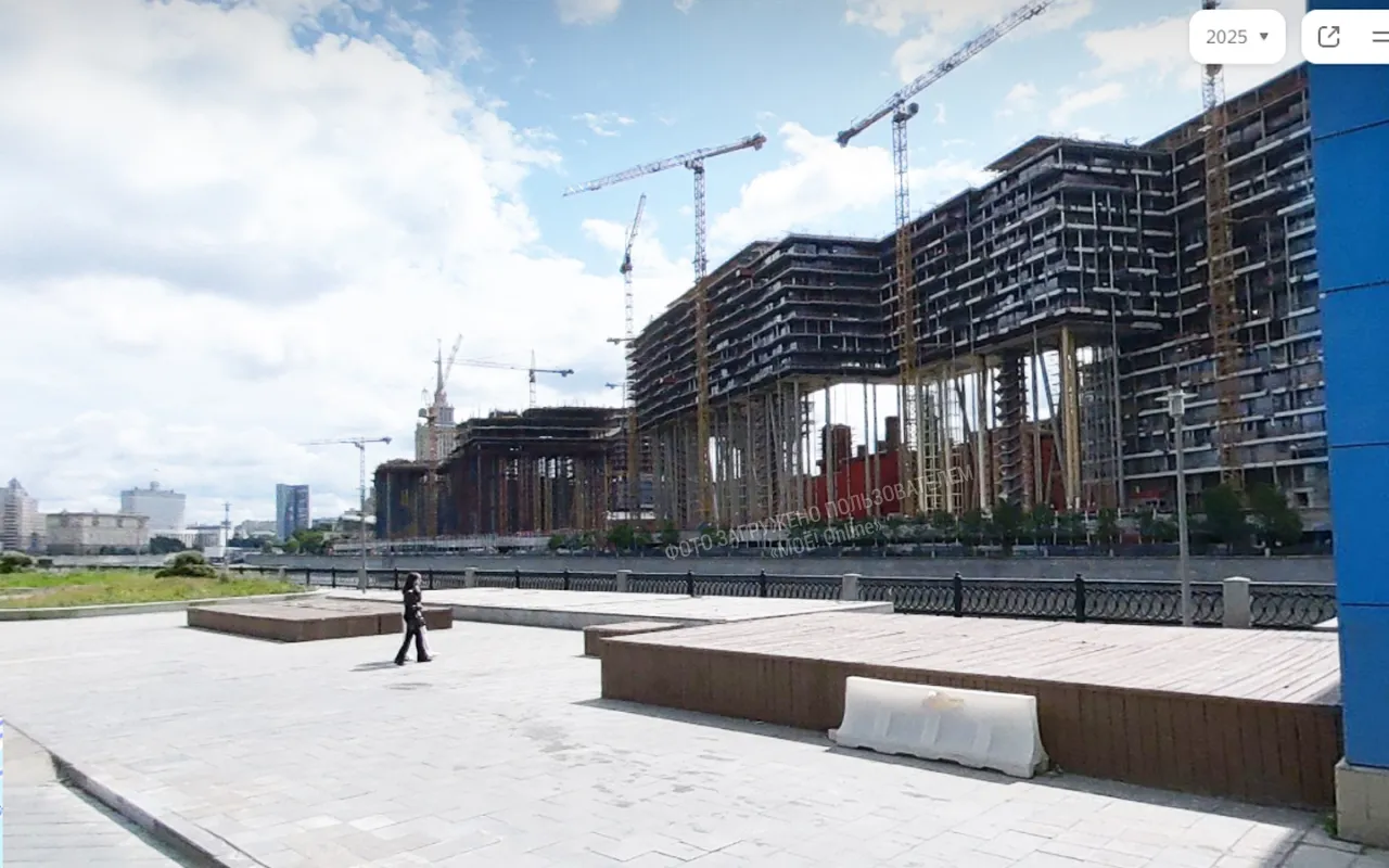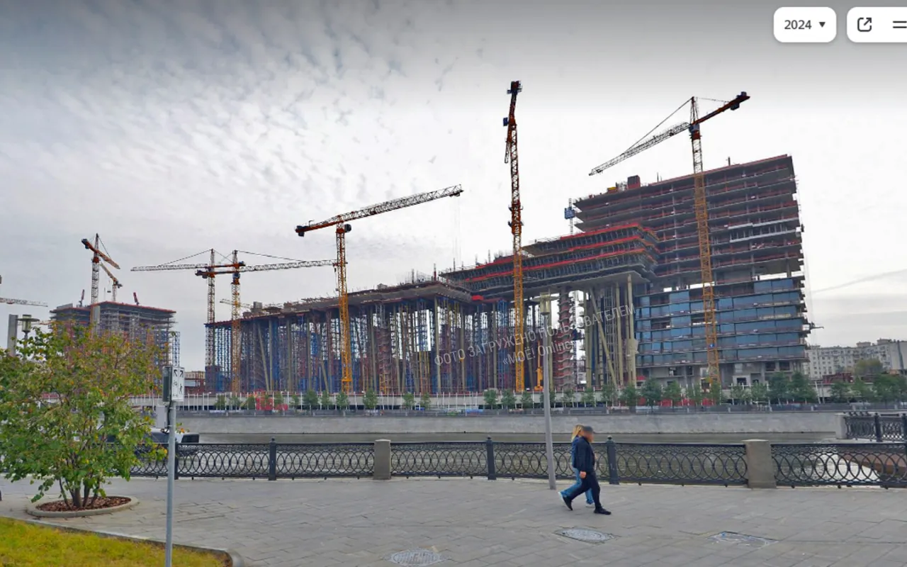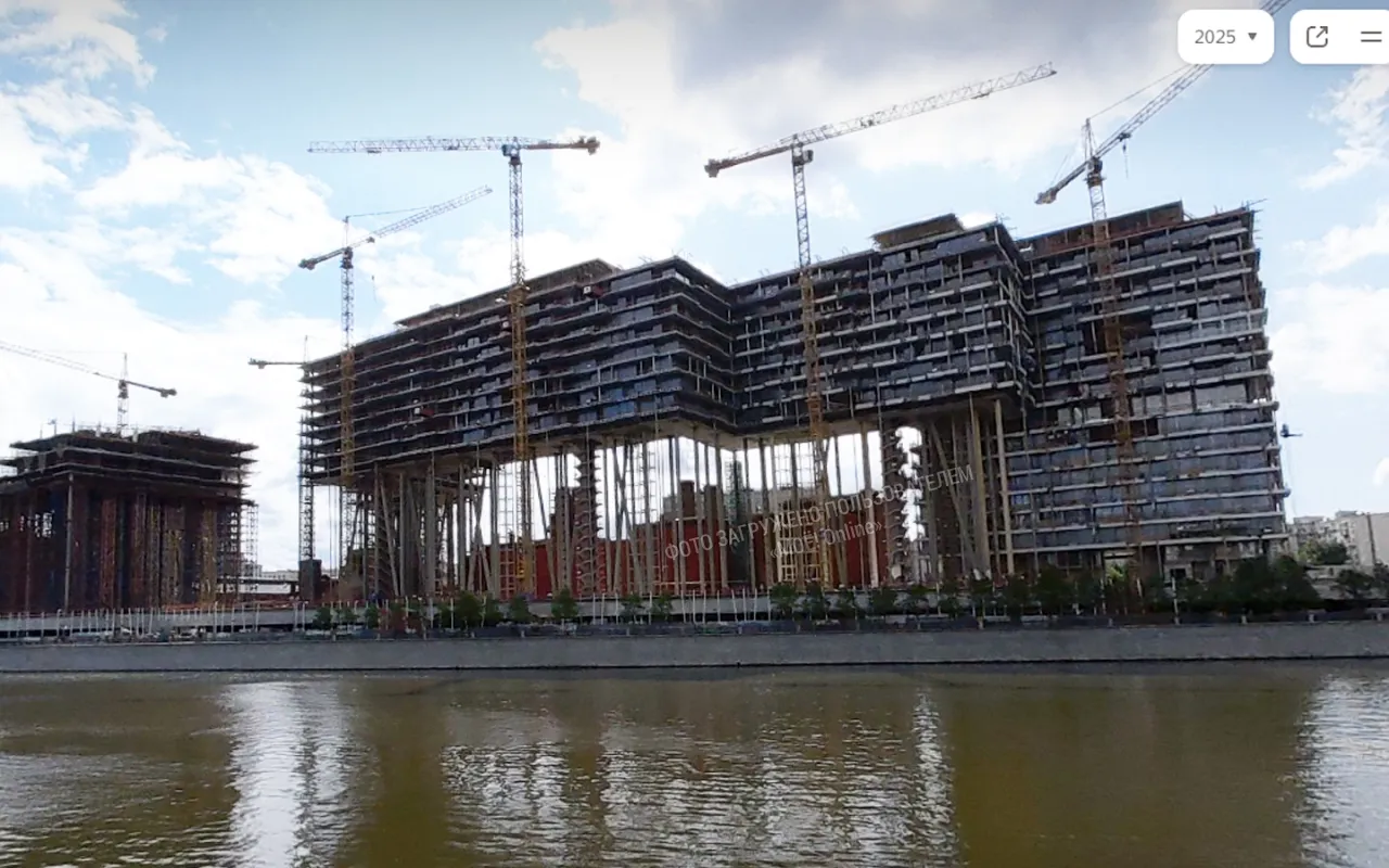 Уже к 2024 году здания поднялись на колоннах на 37,9 метра, что приблизительно 12 этажный дом. И на этой отметке началось строительство первого этажа.