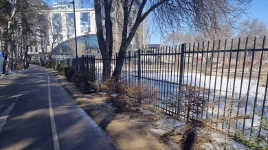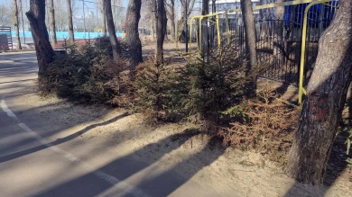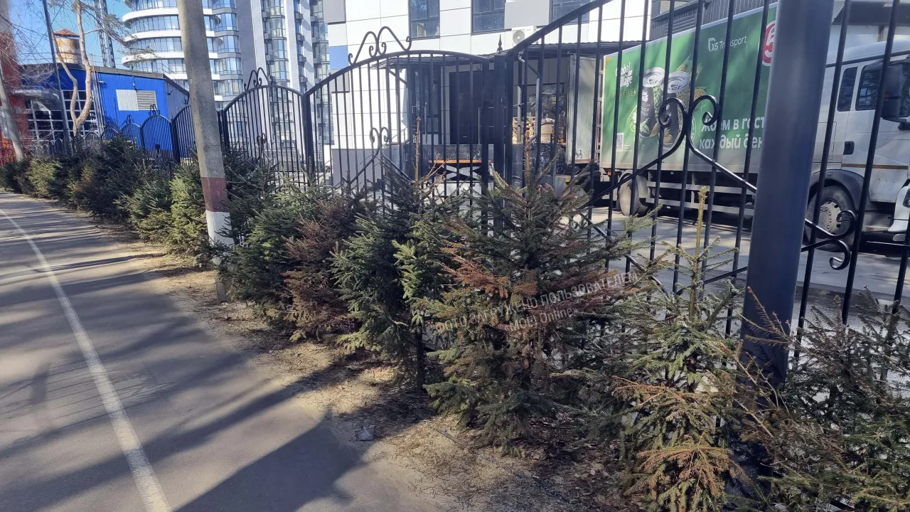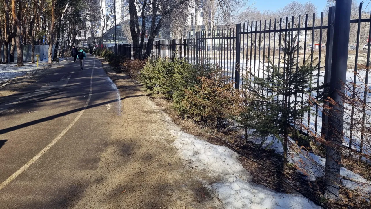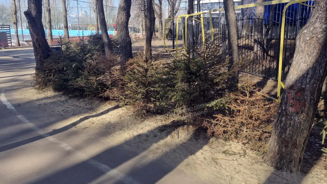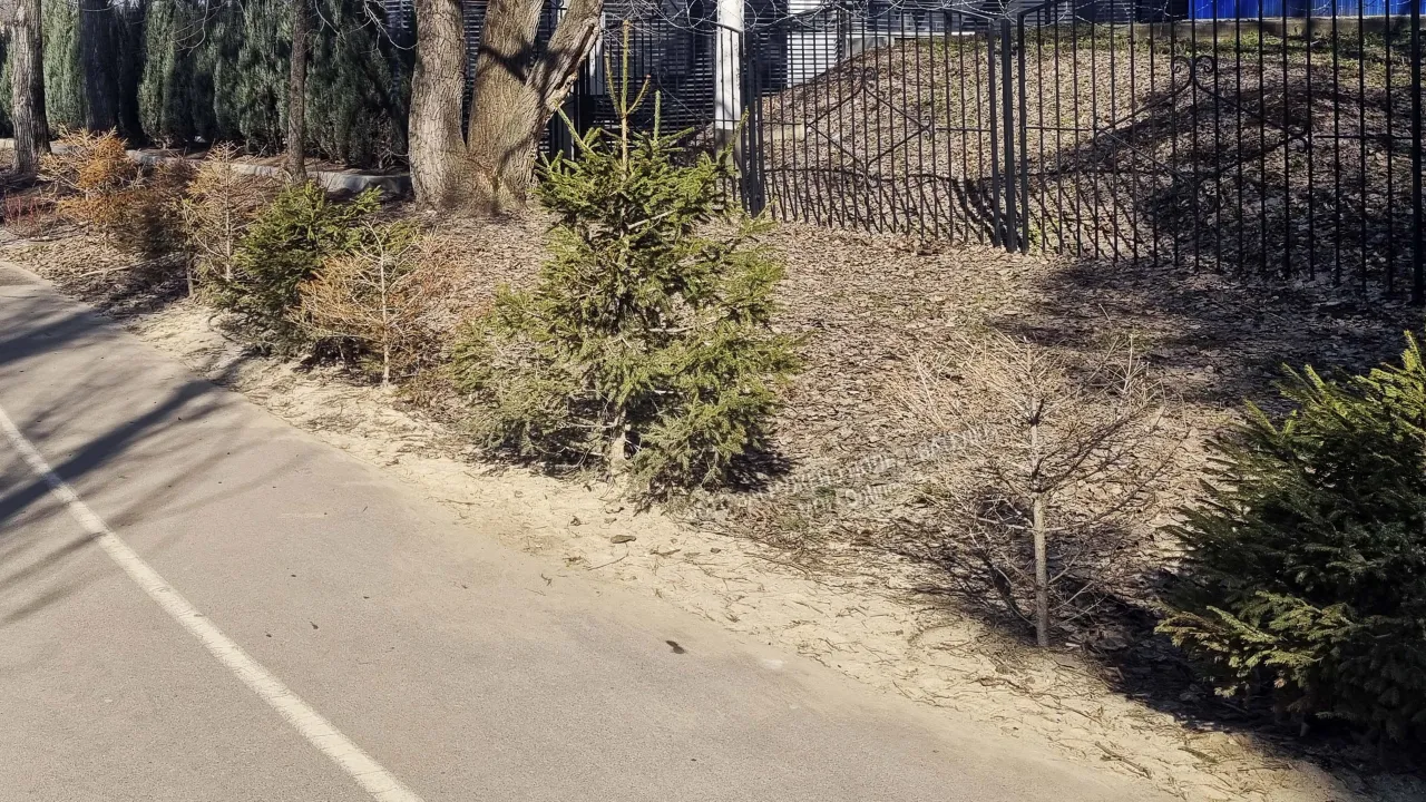 В парке "Дельфин" засыхают молоденькие ели, если идти вдоль забора, то можно увидеть одиночные засыхающие деревца ели.
