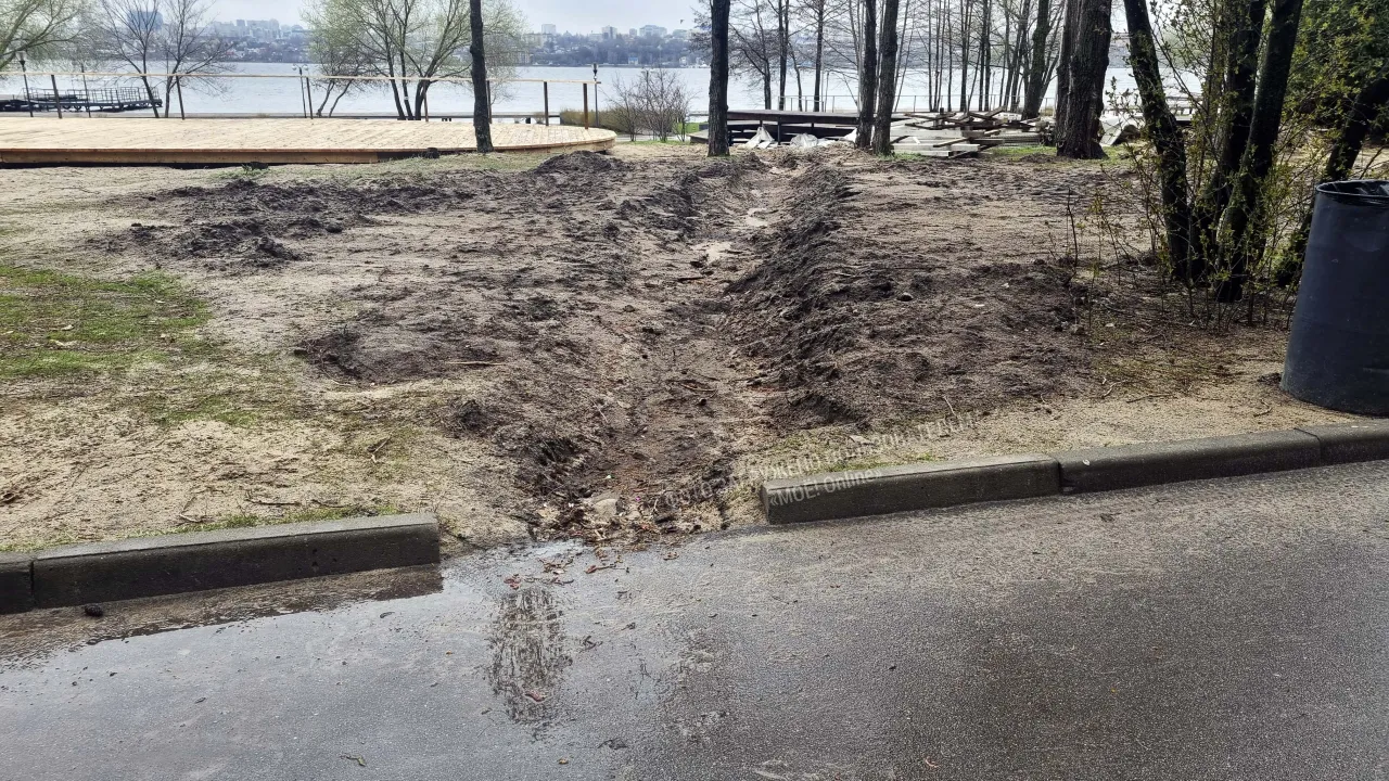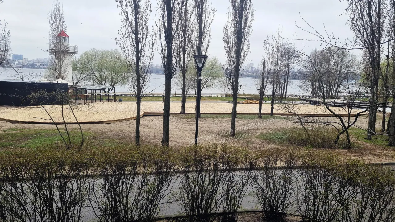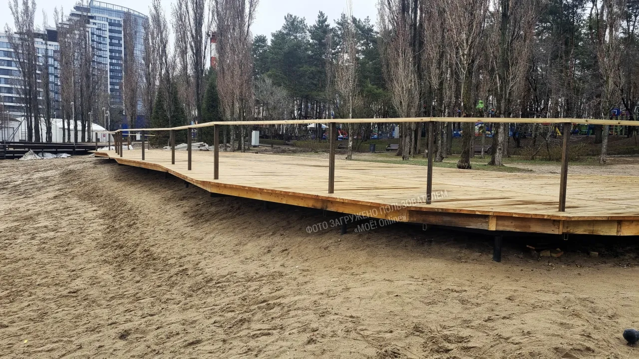 Недалеко от сцены уже на забитых сваях сделали настил из досок, поставив с одной стороны заграждения.