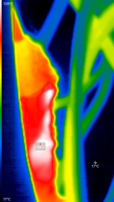 Вот так выглядит проводка через тепровизор в подъездах обычных старых домах при отсутствии отопления думаю коментарии излишни.Вводные линии