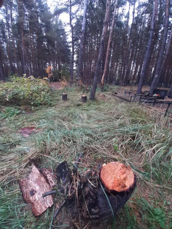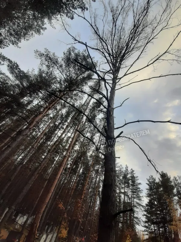 Наклоненных на здоровые деревья, т.е. сгнивших, но не упавших до конца, на захоронения, тоже много.
