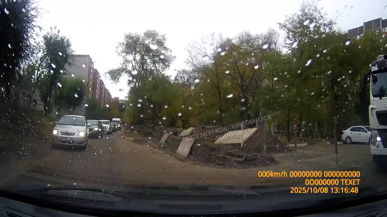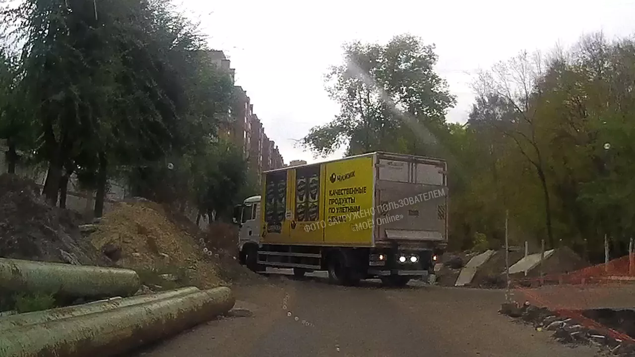 Водитель несколько раз пытался загнать машину в узкое пространство, чтобы не свалиться в котлован и не оторвать бампер о гору грунта.