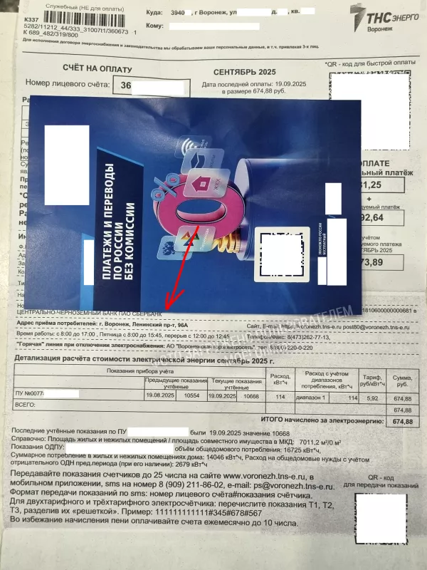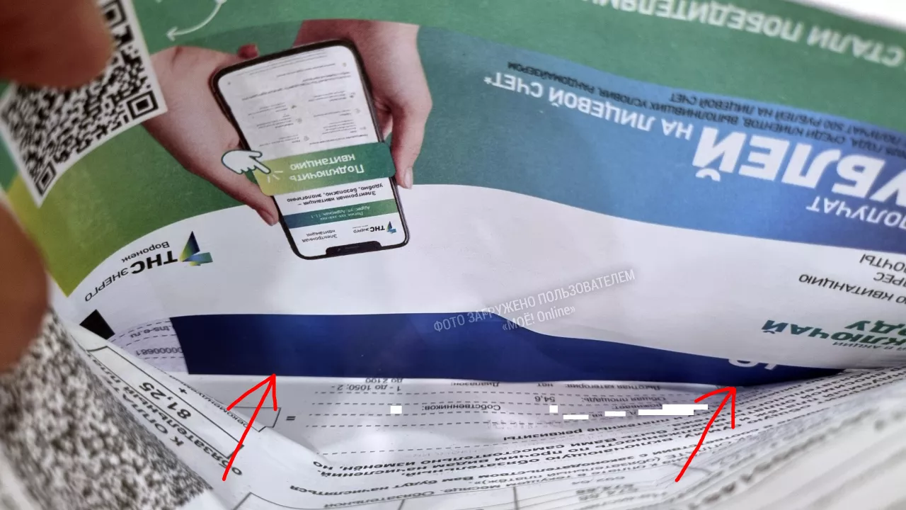 Пришла квитанция от ТНСэнерго Воронеж, уже начал вскрывать, но почувствовал, что конверт - квитанция толще обычного. Посмотрел внутрь и увидел края синего листа.