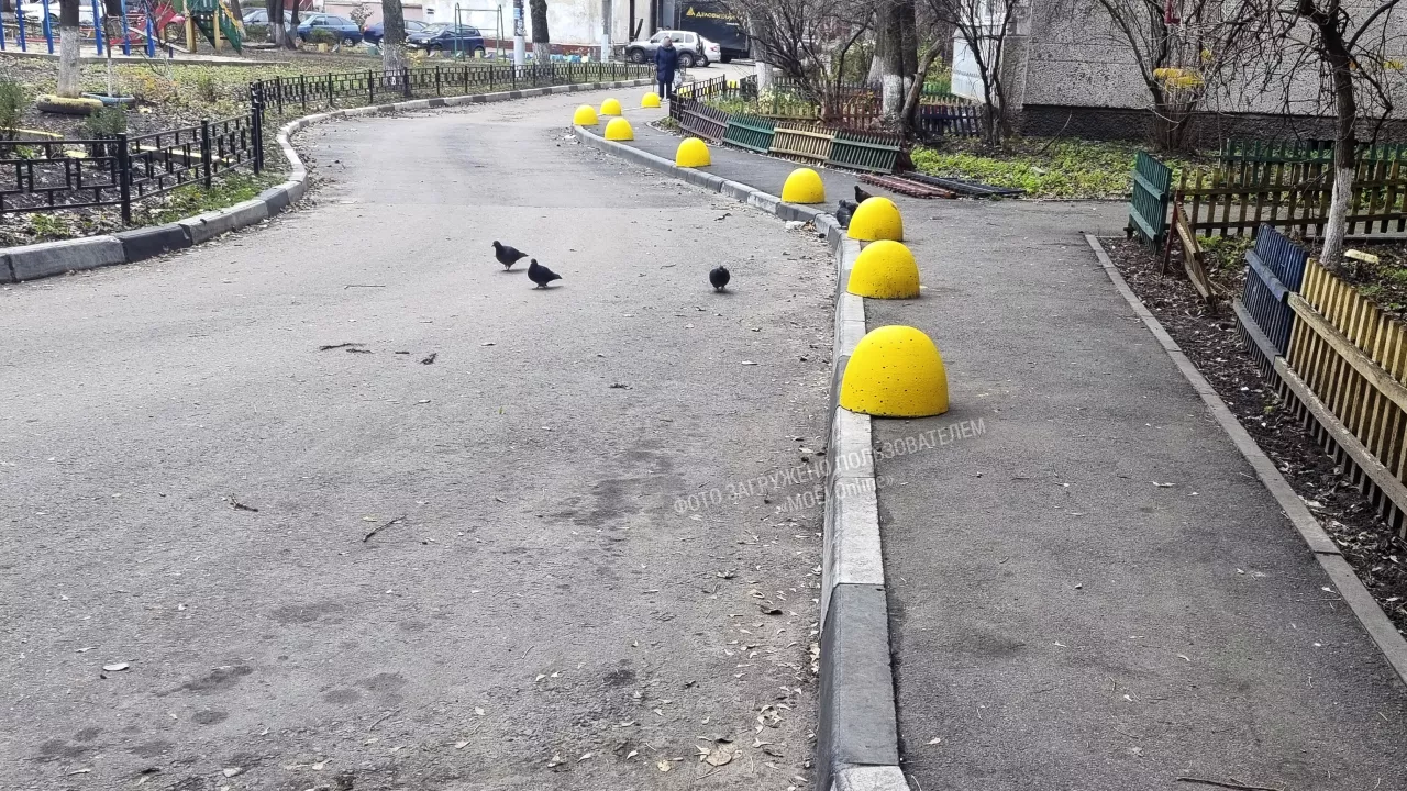 Видимо, окрылённые успехом, жители спустя некоторое время вдали на другом тротуаре поставили бетонные полусферы, окрашенные в жёлтый цвет.