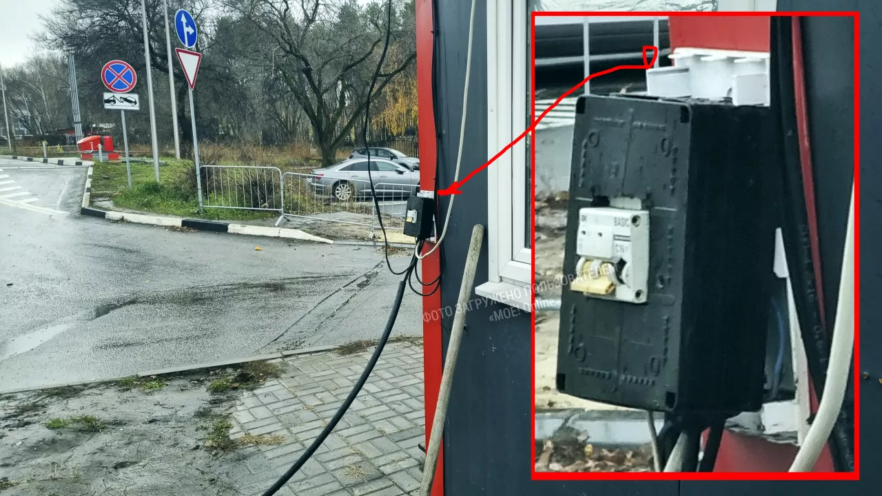 Всё началось, с обнаруженных электрических кабелей идущих к шлагбауму, валяющих на асфальте, фото от 19.05.2025г. По данному нарушению я дважды обращался через "обратную связь" сайта Воронежского правительсва.