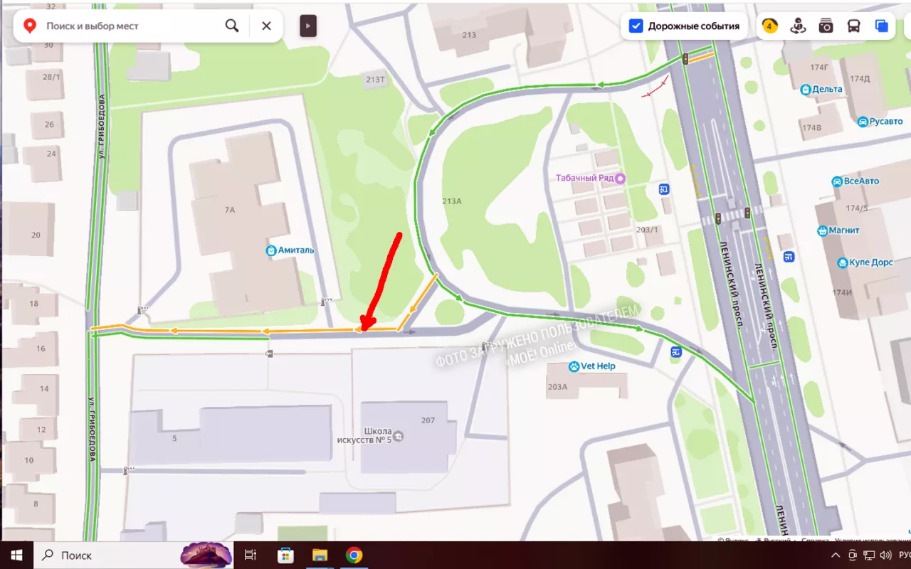 По данной дороге тоже движутся машины, карты Яндекс показывет этот участок в жёлтом цвете.