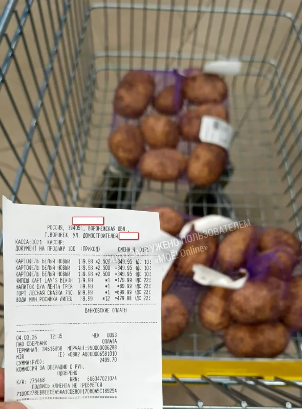Я загрузил всё в тележку и поехал по экскалатору вниз к машине..Еду , а сам смотрю в чек и недоумеваю..Откуда такая сумма за картошку?? Да ещё и по одинаковой ( какой-то заоблачной ) цене???