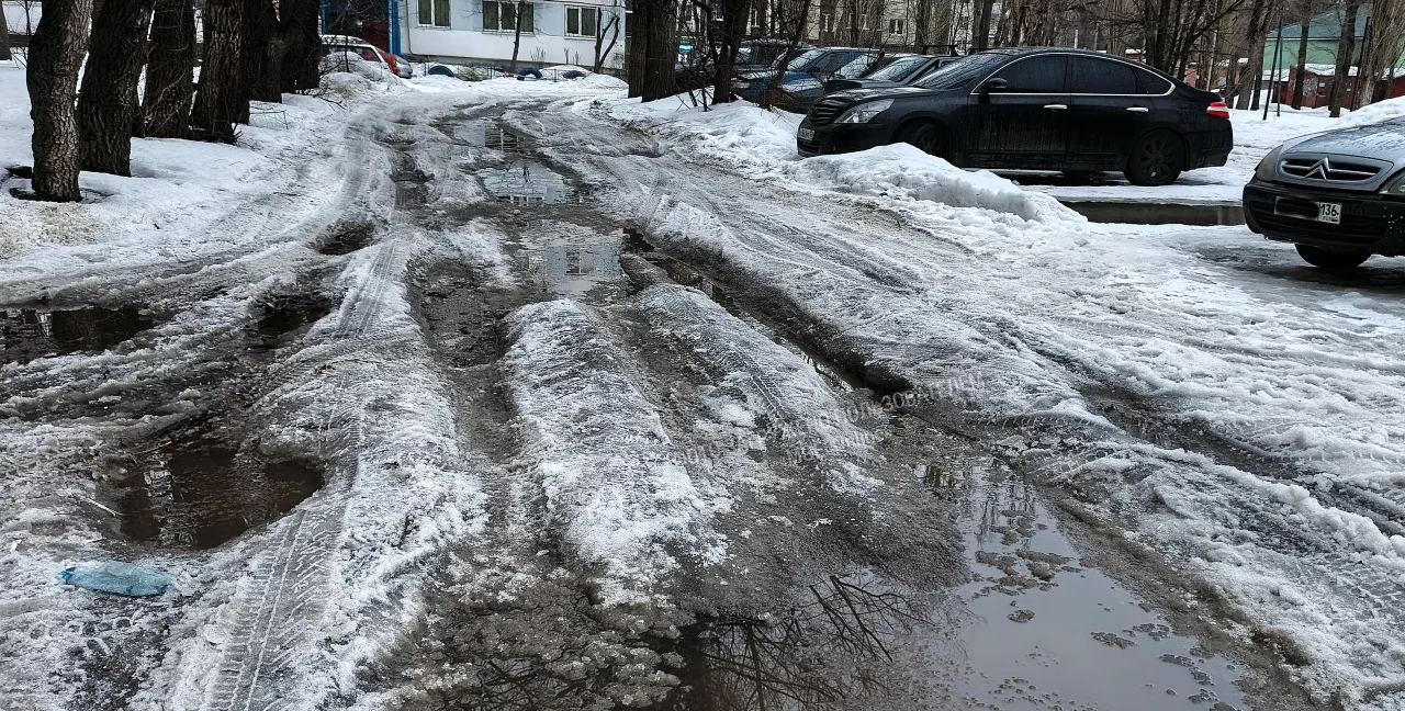 А снег и наледь с зимы не убраны..