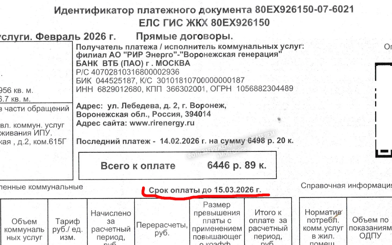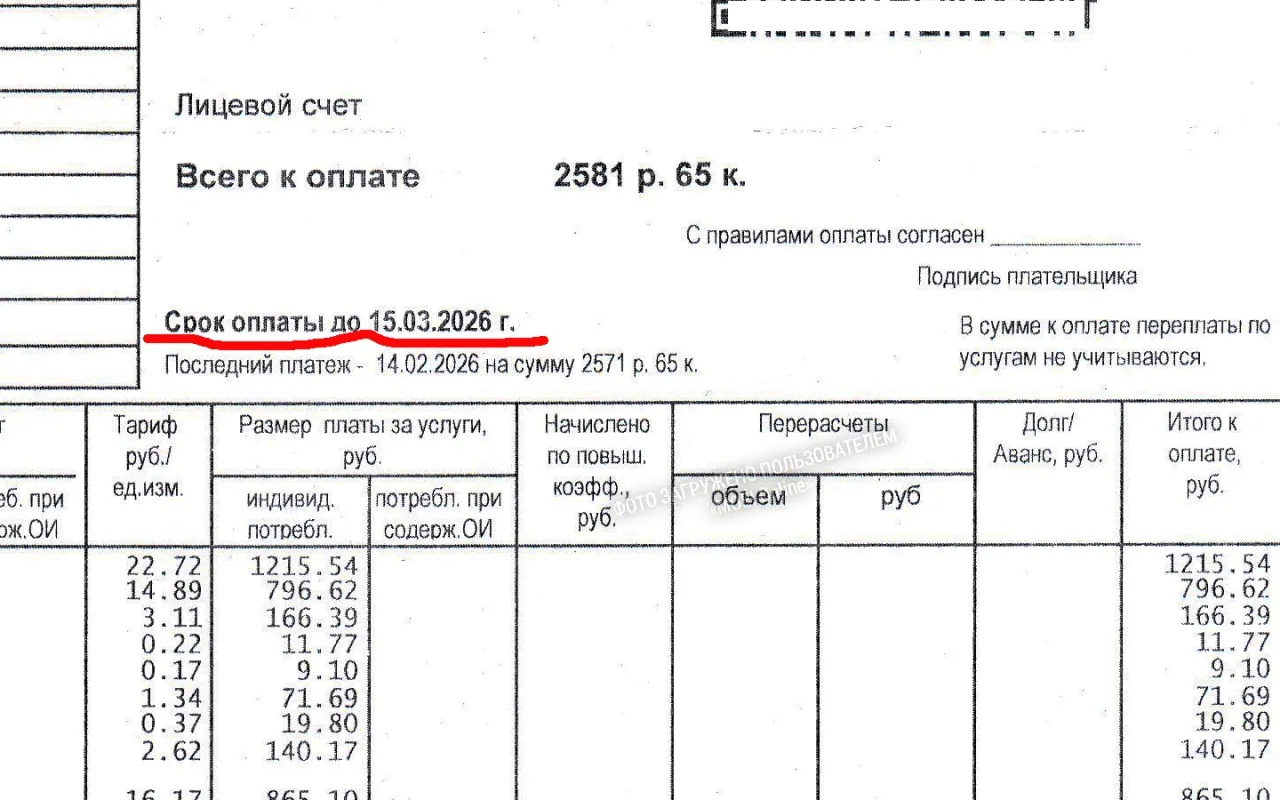 Также в квитанции указана: Дата выписки квитанции 02.03.2026. Но как они уважительно обращаются к плательщику: Уважаемый (ая) ****! необходимо произвести оплату до 15 числа…