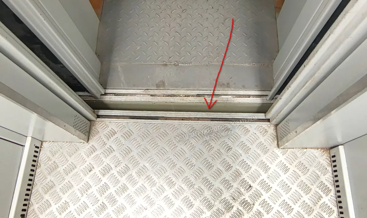 Речь о промежутке между лифтом и полом в лифтовой..