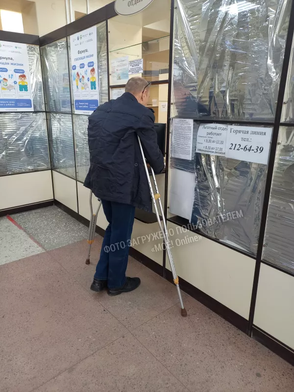 Город. Аптека. К окошку выдачи бесплатных лекарств подходит мужчина на костылях и протягивает рецепт…