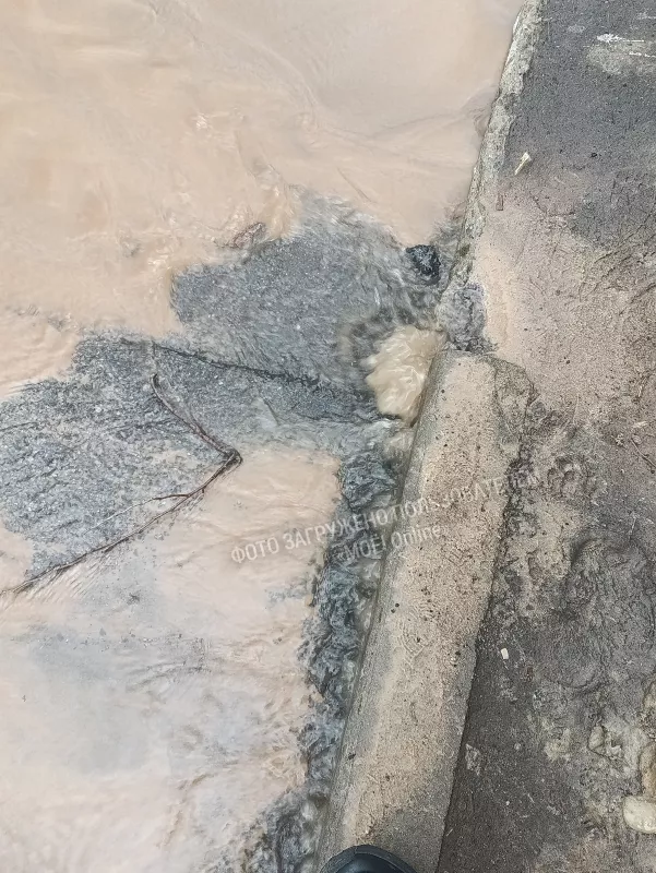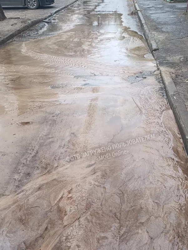 В Воронеже на улице Туполева 22, уже 2 день потоком льётся вода из под осфальта