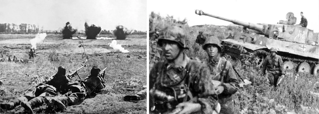 Мой отец Олейников Иван Николаевич жил и работал в г. Павловске Воронежской области. В первые дни войны, 23 июня (или 23 июля), был призван Павловским райвоенкоматом. Прошёл всю войну от донских берегов до Берлина. Служил в 707-й отдельной автомобильной роте, которая входила в танковую дивизию генерала Катукова. Участвовал в боях на Курской дуге, под Прохоровкой, освобождал Харьков, Корсунь-Шевченковский. Была страшная переправа через Днепр под минометным огнём. Это был не гоголевский «чуден Днепр», а кровавое месиво из человеческих тел. Дальше были Польша, Чехословакия.