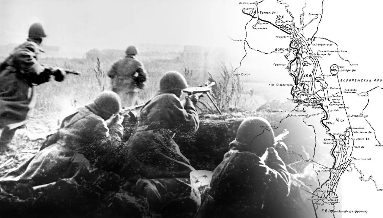 В районе Воронежа батальон пехоты и 8 танков противника пытались атаковать наши позиции. Огнём артиллерии и пехотного оружия все вражеские танки были уничтожены, а пехота рассеяна».